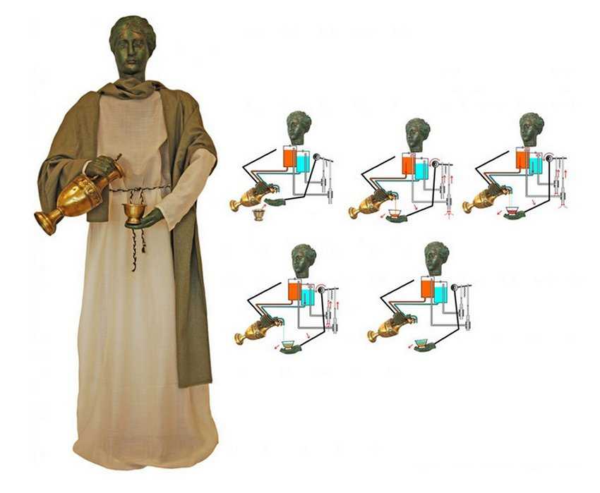 Но настоящую славу Филону принесли механизмы, в которых использовалась вода (или вино — как в служанке). В арабском мире был свой «мастер воды» – аль-Джазари (1136-1206), самым известным изобретением которого были «слоновые часы». Вот как они работали: