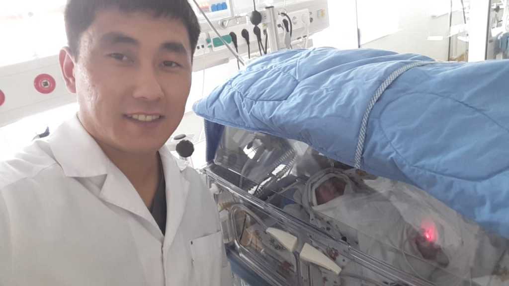 — Второй ребенок родился очень слабым. Сердцебиение было единичным. Но я все равно провел ему полную реанимацию, принес его в отделение, подключил искусственную вентиляцию легких (ИВЛ), обеспечил венозный доступ согласно протоколу. Хотя все тогда мне говорили, что он уже умер. Но я настаивал на своем. Но в итоге к утру у ребенка появилась моча, а это признак того, что у него стабилизировалось состояние. Потом появилась реакция зрачка. Спустя шесть суток он задышал сам, и его перевели из реанимации в отделение. В ту ночь я его буквально выходил. Он ведь был доношенным ребенком, только ему немного не хватило сил. Просто он такой тяжелый родился, — рассказал Абида Дашибалов.