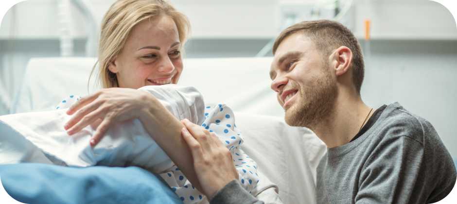 После появления малыша на свет новоиспеченные родители остаются втроем в палате: знакомятся с младенцем, отдыхают.