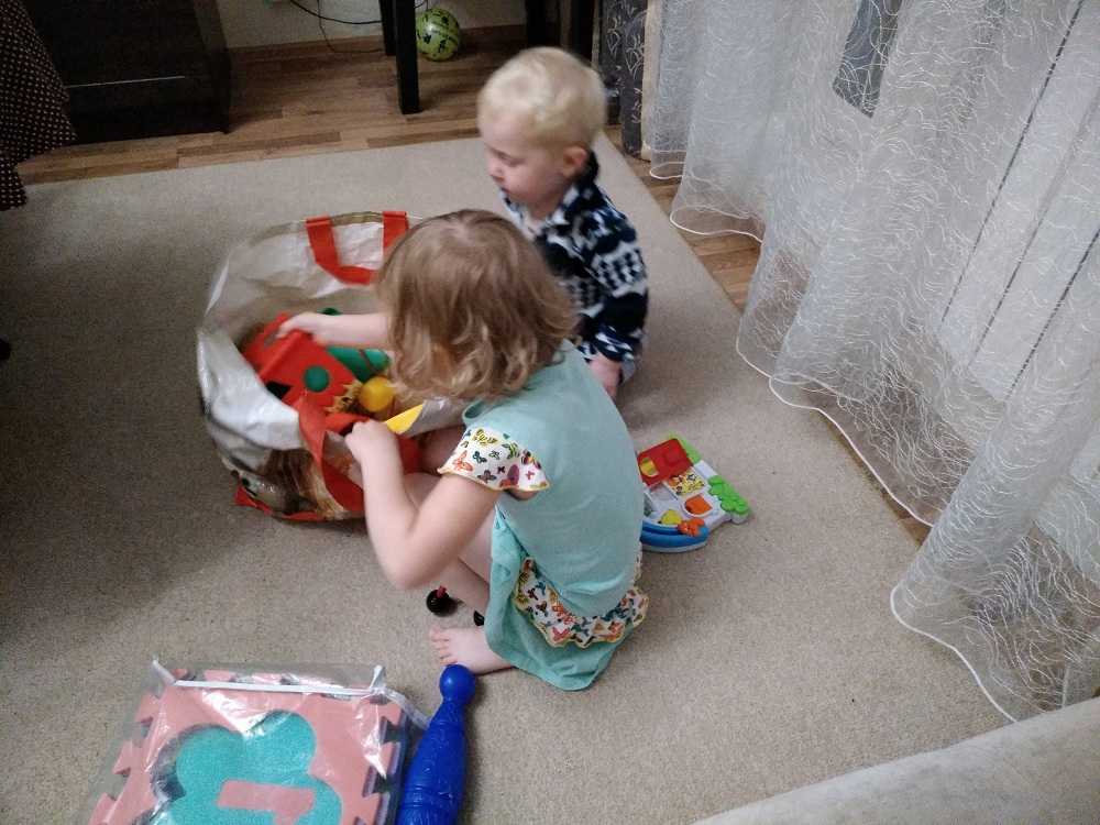 Один пакет с игрушками достаю с балкона – играют, другие пакеты убраны.