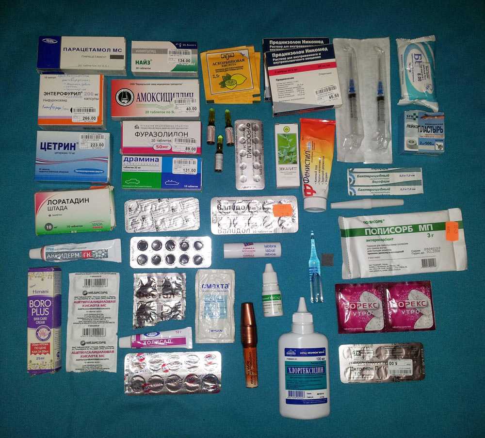 Берем с собой стандартный набор аптечки. Обязательно проверяем наличие средств от боли, понижения жара, противорвотных препаратов и что-нибудь от аллергии.
