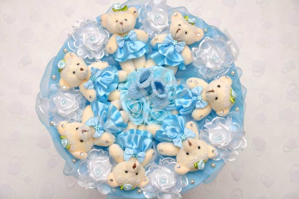 Несколько месяцев букет постоит в первоначальном виде, а потом он будет постепенно разбираться на «запчасти», подрастающему ребенку будут готовые игрушки. Такая практичность букетов из мягких игрушек оправдывает их высокую стоимость.