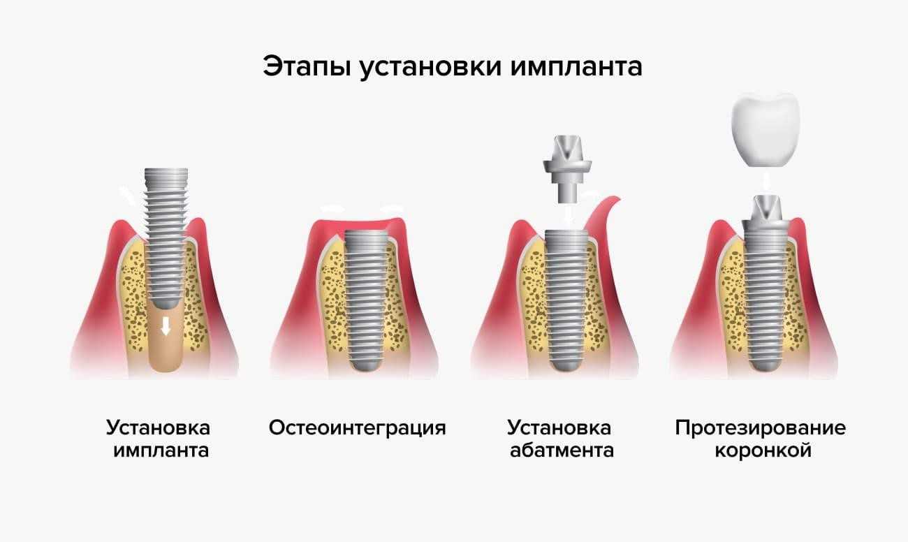 В современное время имплантация осуществляют в несколько этапов. Это более предпочтительно для стоматологов и пациентов. Процедура делится на следующие этапы: