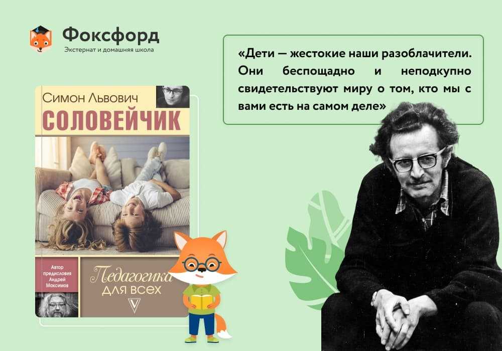 Симон Соловейчик — журналист и теоретик педагогики, который ввёл понятие «воспитание без воспитания». Книга «Педагогика для всех» впервые издана в середине 1980-х и выдержала несколько переизданий. Это история о том, что происходит между каждым взрослым и ребёнком. Автор написал её, когда стал отцом в третий раз и осознал, что не только он воспитывает сына, но и сын воспитывает его.