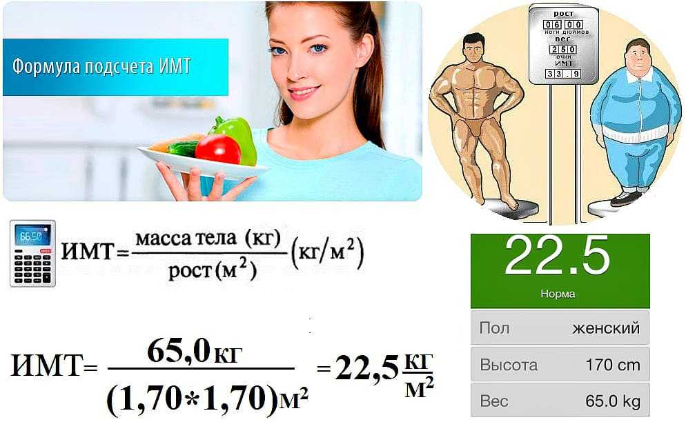 В норме показатель индекса массы тела (ИМТ) находится между 20 и 25, он самостоятельно рассчитывается по формуле, в которой масса тела в килограммах делится на рост в метрах.