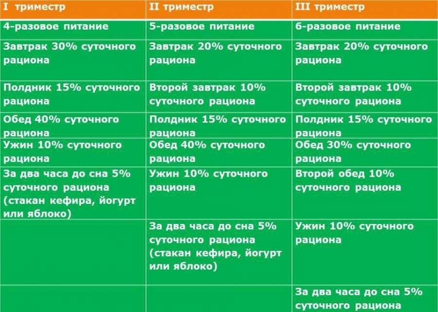 Таблица питания: рацион беременной (1,2,3 триместр)