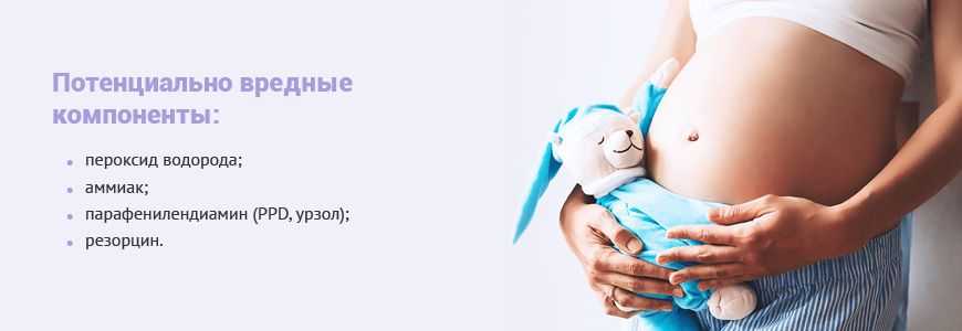 Аммиак, обеспечивающий стойкость цвета, является сильнейшим аллергеном. Точно неизвестно, может ли он проникать через плацентарный барьер, так как в целом в кровь практически не поступает, действуя местно, однако при вдыхании паров возможно развитие нарушений со стороны дыхательной системы и ожог слизистой. Кроме того, запах аммиака обостряет токсикоз у беременной, что само по себе вредит плоду.