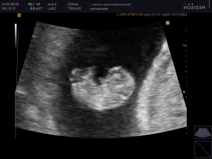 На УЗИ плода на 9 неделе определяется толщина плаценты и общее состояние пуповины. При помощи допплера, будущая мама может отметить частоту сердечных сокращений малыша. Хотя многие внутренние органы уже достаточно развиты, это не всегда можно увидеть на УЗИ на 9 неделе.