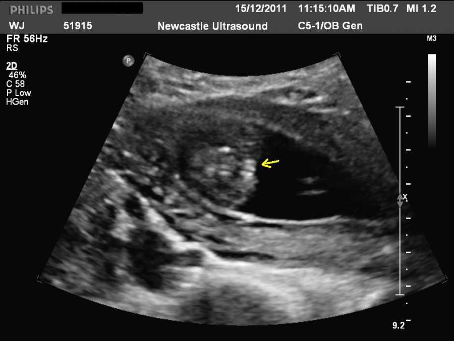 Также на врач может увидеть и сообщить родителям много другой полезной информации, а также показать плод на мониторе, присоединенном к датчику УЗИ. Эмбрион на 9 неделе жизни выглядит как человек, явно различимы голова, лицо с носиком и губами, ушные раковины, тельце, ручки и ножки с маленькими пальчиками. Но у ребенка все есть небольшой хвостик, а пропорции тела далеки от пропорций взрослого человека, и даже новорожденного. Голова эмбриона гораздо больше и доминирует над телом.