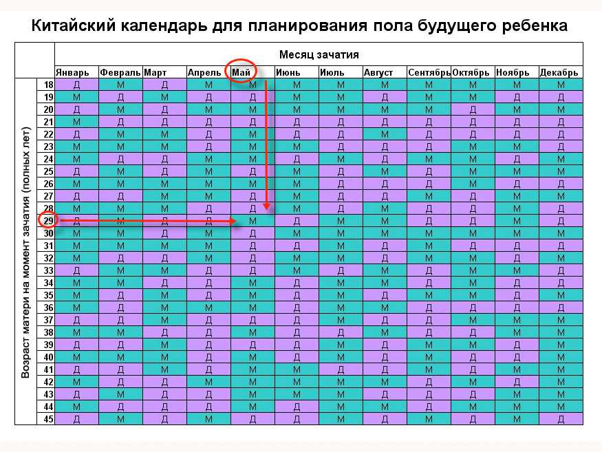 Пример: Если вам 29 лет в момент зачатия, и оно произошло в мае, то у вас родится мальчик.