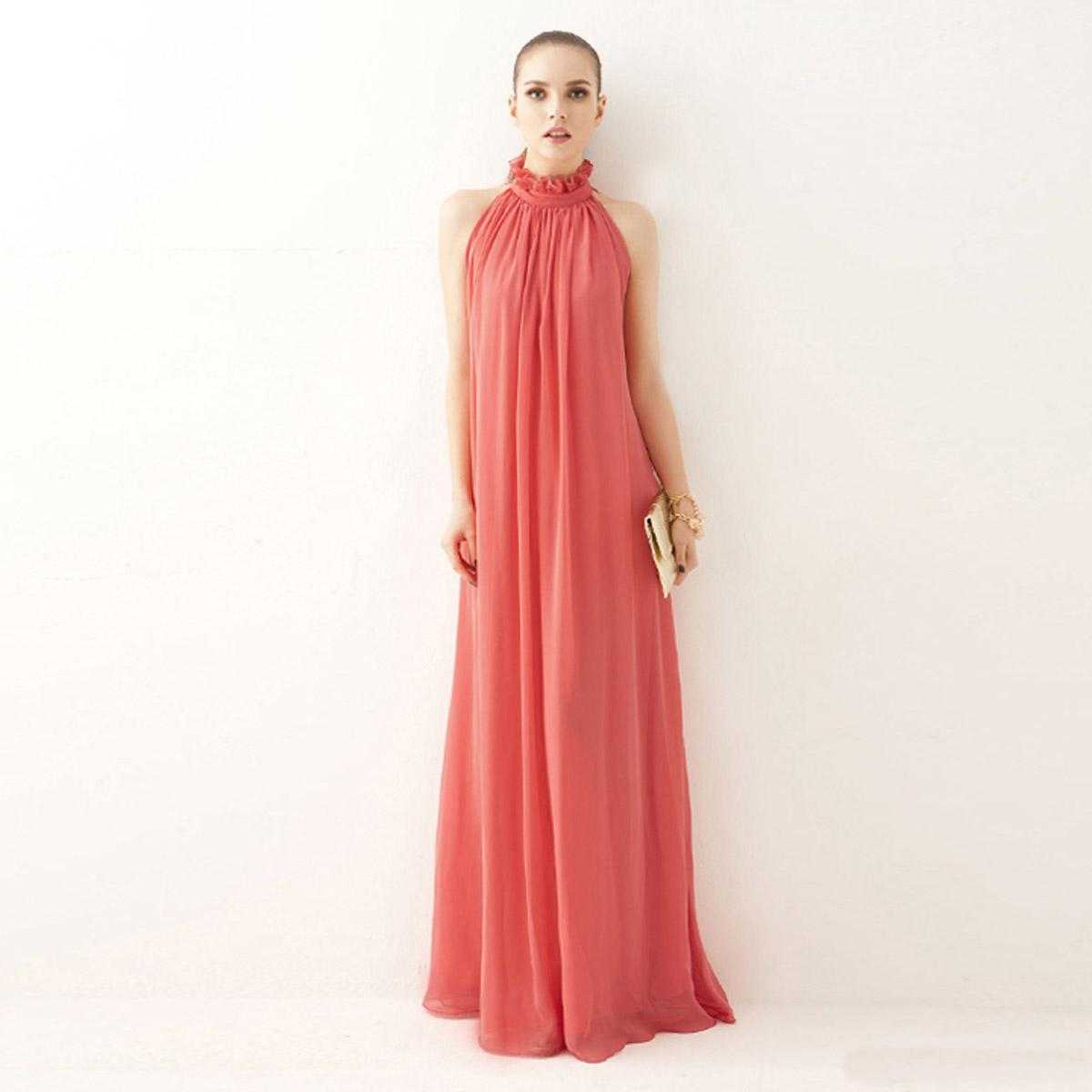 Макси-платья чаще всего имеют струящийся крой и разлетающиеся полы. Сверху под грудью они перехватываются изящным поясом. Миловидно смотрятся расклешенные рукава. Соблазнительную грудь подчеркивает вырез лодочкой, глубокий V-образный, либо собранный на резинке и растянутый на голых плечиках. Моделька бывает прямой, слегка или сильно-расклешенной. Это зависит от структуры материи. На некоторых складки и драпировка смотрятся особенно нежно.
