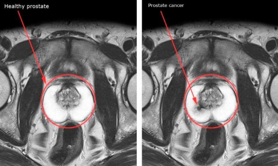 На фото ниже показано раннее выявление рака простаты при помощи МРТ.